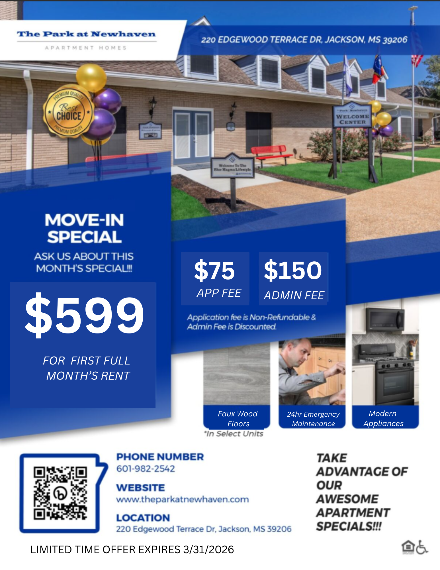 Spring is in the air!🌸Move into your new home this March and take advantage of our limited-time move-in specials. First Full Month’s Rent is just $599 New season, new space, new savings — don’t miss your chance to make your move!